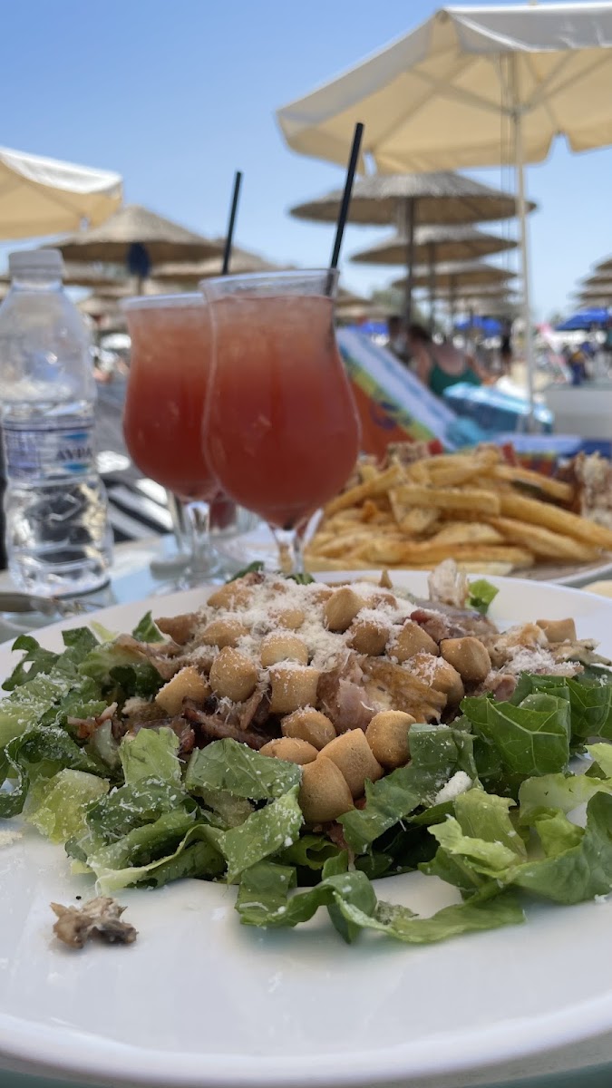 The atmosphere here is relaxed yet vibrant, offering a welcoming space to unwind—whether you’re lounging on the beach, enjoying a refreshing drink, or sharing a meal with friends and family. The sunbeds are noted for being comfortable and reasonably priced, ensuring that you can indulge in the sun without breaking the bank.